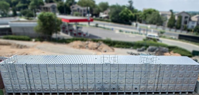 The massive facility is a rectangular, sectional bolted tank built to provide for the exclusive requirements of the poultry farm, which supplies international and national markets with chicken for processing and distribution.