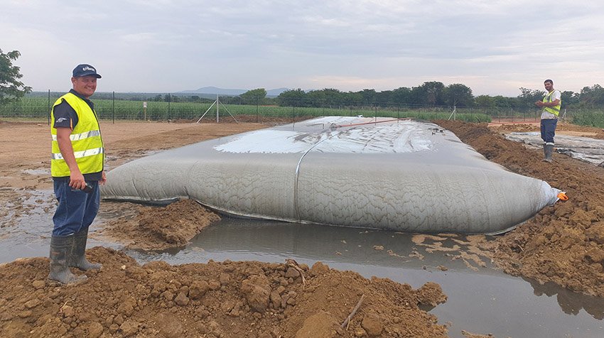 “To contain the sewage, we procured specialised geotextile bags measuring 30 m long by 18 m in circumference,” he says. “These were laid out on a large area near the dam, which had been allocated for this purpose.”